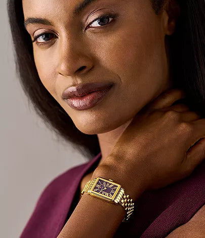 Elegant and architectural, this rectangular watch from the Deco Park collection perfectly balances form and function. The glossy white mother-of-pearl dial is housed within a stainless steel case and Swiss movement. The stainless steel bracelet is made specifically for the Deco Park collection and is interchangeable with any 14mm strap.