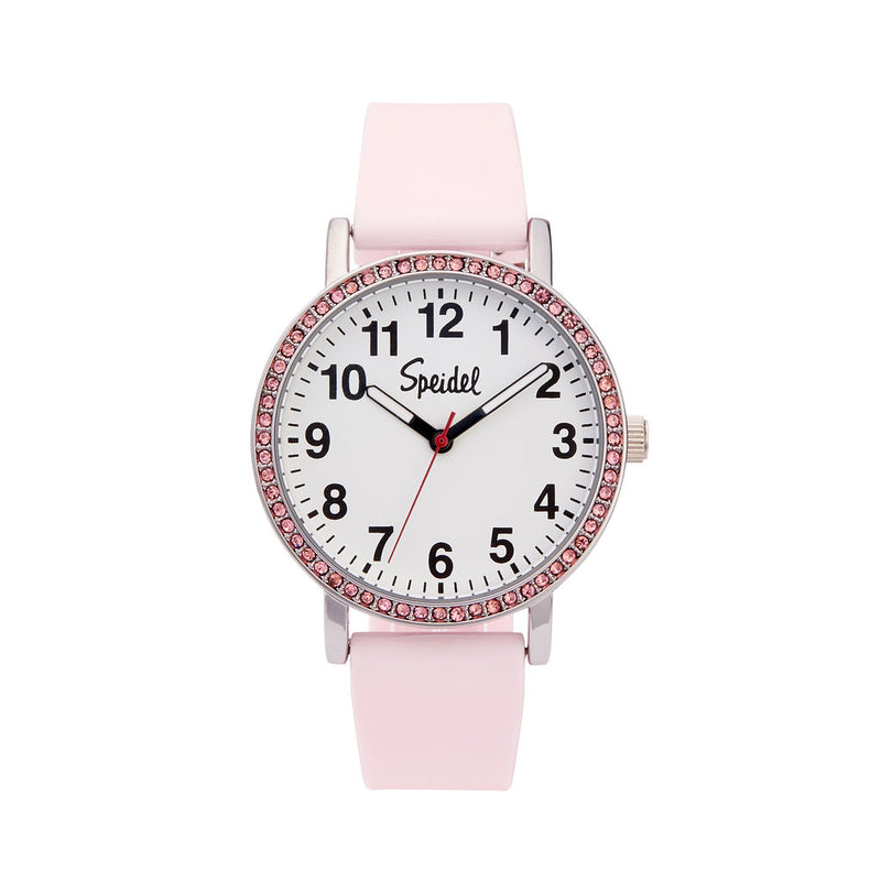 Soft, subtle, and effortlessly stylish. The Brilliance Line Pink Crystal Watch adds a delicate touch of sparkle to an everyday essential. Featuring a soft pink crystal-accented bezel, this watch delivers just the right amount of shine while maintaining a crisp, easy-to-read white dial. Bold black numerals and a sweeping red second hand ensure clear timekeeping at a glance, making it as practical as it is polished.
