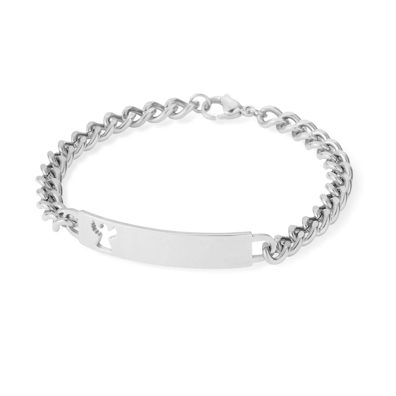 Designed for the woman with a flair for style and sophistication, our ladies’ ID bracelets are sleek, delicate, and durable. The smooth plaque is the perfect place for a personal engravement. This style in particular features a small angel cut out.